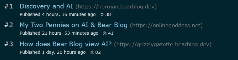 pros: if you like rss feeds then you will be pleased to exclusively find websites with rss feeds on here. And most of the siteās feed is blogs, so, like bear blog, it works if youāre more impressed upon by blogs than by homepages.